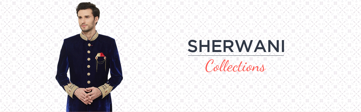 Glamorous Velvet Taj Embroidered Sherwani This is a glamorous velvet sherwani with Taj Mahal embroidered on end of the sherwani and on the sleeves. These fabulous decorations adorn the collar and sleeve cuffs. The Decorated golden button on the front of Eclipse Blue velvet sherwani. The sherwan..